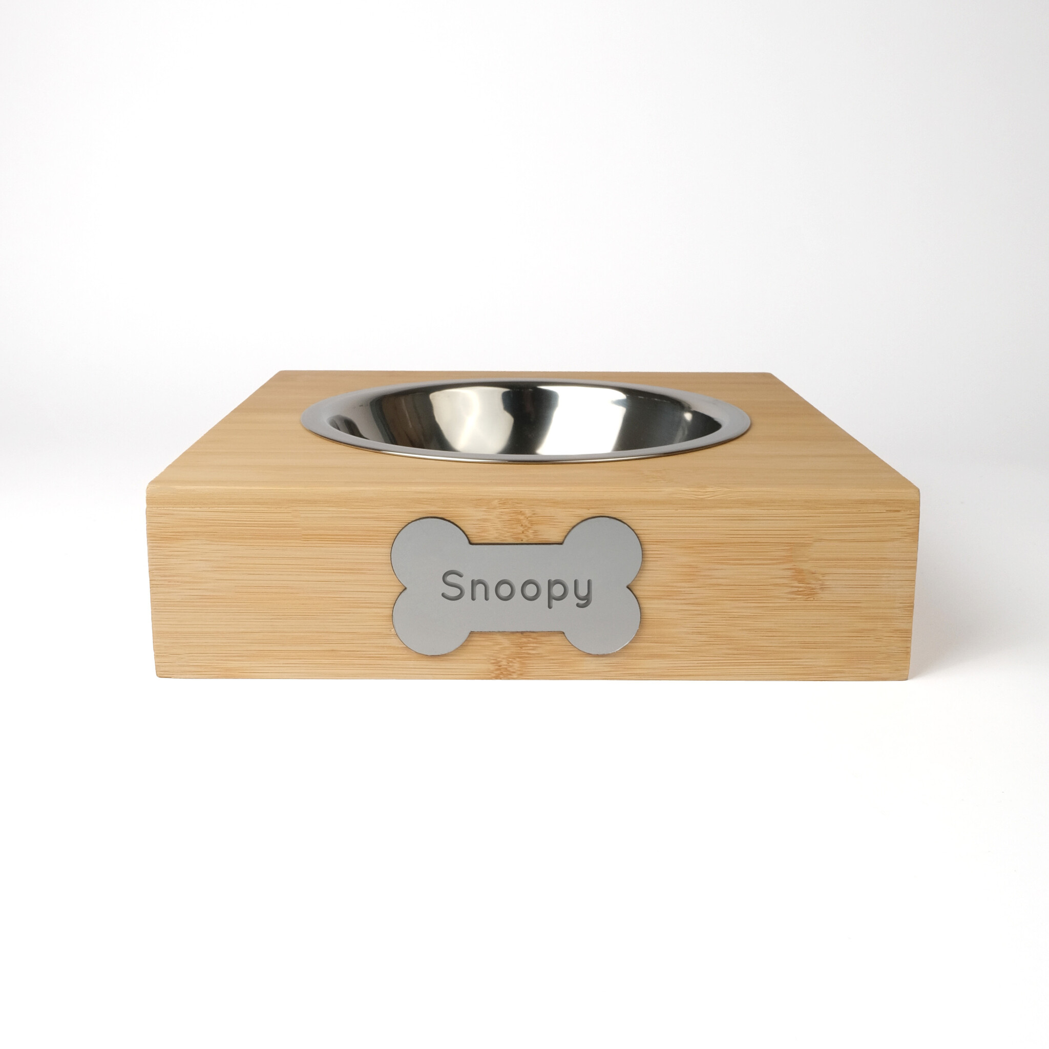 Je kan deze voederbak personaliseren met de naam van je huisdier. De naam wordt haarscherp gegraveerd op het naamplaatje.